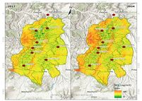 Ο οριζόντιος άξονας απεικονίζει τη μέση απόλυτη τιμή SHAP, η οποία δηλώνει πόσο συνεισφέρει κάθε κανάλι embedding (A00–A63) στην πρόβλεψη. Παρατηρείται ότι για τα (a) NO2 και (b) SO2, η πρόβλεψη κυριαρχείται από ένα μικρό υποσύνολο καναλιών, ενώ τα υπόλοιπα έχουν αμελητέα επίδραση. Αντίθετα, στα (c) PM2.5 και (d) CO η επιρροή κατανέμεται πιο ομοιόμορφα. Το εύρημα αυτό αναδεικνύει τον πλεονασμό πληροφορίας (redundancy) στα 64 κανάλια. Τέλος, η εφαρμογή του μοντέλου για την παραγωγή χαρτών ανέδειξε τη χωρική υπεροχή της μεθόδου. Κατασκευάστηκαν χάρτες χωρικής πρόβλεψης για το NO2 και το SO2 σε ανάλυση 10 μέτρων, οι οποίοι αποτύπωσαν τη μεταβλητότητα λεπτής κλίμακας σε όλο το Κίτο, καθώς τα μοντέλα για τους συγκεκριμένους ρύπους πέτυχαν τόσο αποδεκτή όσο και ψηλότερη ακρίβεια. Σε αντίθεση με τις απλές παρεμβολές που "θολώνουν" την πληροφορία, η ανάλυση των 10 μέτρων αποκαλύπτει κρίσιμες λεπτομέρειες. Στον χάρτη του NO2, παρατηρείται έντονος εγκλωβισμός των ρύπων στη λεκάνη της πόλης λόγω της τοπογραφίας των Άνδεων, με τις συγκεντρώσεις να "ακολουθούν" πιστά τη χάραξη των μεγάλων λεωφόρων.