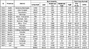 Εκτιμήθηκε ότι κάηκαν συνολικά 136.709 εκτάρια σε 18 ζώνες πυρκαγιάς σε διαφορετικά επίπεδα, και περίπου το 40% της καμένης έκτασης είχε υψηλή και μέτρια-υψηλή σφοδρότητα. Το EFFIS υπολόγισε τη συνολική καμένη έκταση σε 144.871 εκτάρια, και οι συγκρίσεις βάσει πολυγώνων με το EFFIS έδειξαν ότι ελήφθησαν συνεπή αποτελέσματα σε σχεδόν όλα τα πολύγωνα.