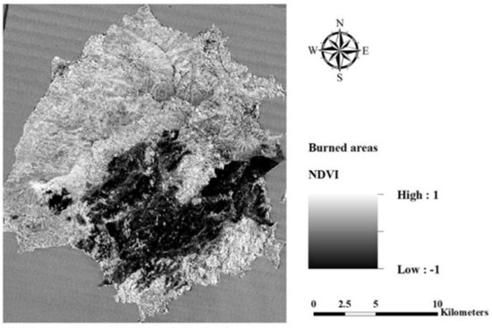 - Λέξεις κλειδιά : Δασική πυρκαγιά · Μεσογειακό οικοσύστημα · Δείκτης κανονικοποιημένης διαφοράς βλάστησης · Ανάλυση κύριων συνιστωσών · Χρονολογική ανάλυση
