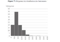 2.Μήκη γραμμικών σχηματισμών :Το διάγραμμα συχνότητας των μηκών δείχνει κατανομή έως 1600 m με μέγιστη κορυφή 45% για το διάστημα 400 m έως 800 m.